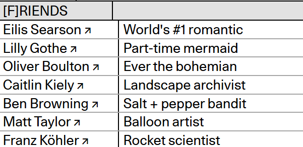 Germany-based graphics reporter Max Kohler has a portfolio website that really speaks to me as a project manager and organization nerd. He’s taken a love of spreadsheets to the next level with a graph-themed display of nearly ten years’ worth of content he’s created. He’s found a way to collect all of his projects, writing, teaching, and social media links in one place as a snapshot of his career. Initially it’s a bit overwhelming, but he’s implemented a purple-pink ombre in the background and a feature for the cursor to highlight specific cells, which makes the website straightforward to digest once you understand what you’re looking at.